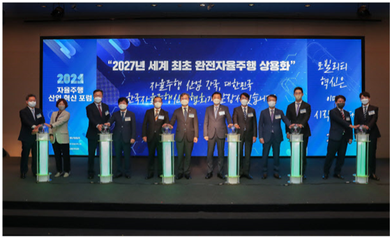 행사에는 국토교통부 황성규 제2차관, 산업통상자원부 박진규 제1차관, 조성환 협회장(현대모비스 대표이사), 권용복 한국교통안전공단 이사장, 허남용 한국자동차연구원 원장 등 자율주행산업 관련 기업인들이 참석했다.